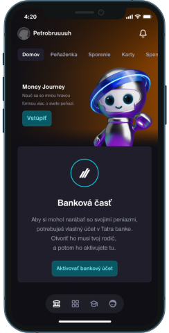 In the Tatra Banka application menu, we have created a Parent Zone, which allows you to: