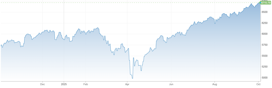 Zdroj: https://www.cnbc.com/quotes/.SPX?qsearchterm=s&p, dňa 3. 10. 2025