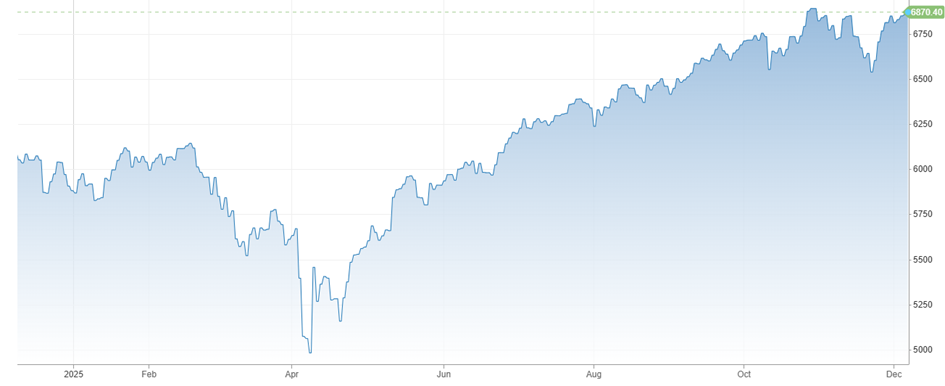 Zdroj: https://www.cnbc.com/quotes/.SPX?qsearchterm=s&p, dňa 5. 12. 2025