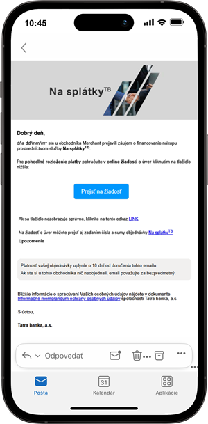 Pre overenie vašej objednávky stačí vyplniť formulár Na splátkyTB.
